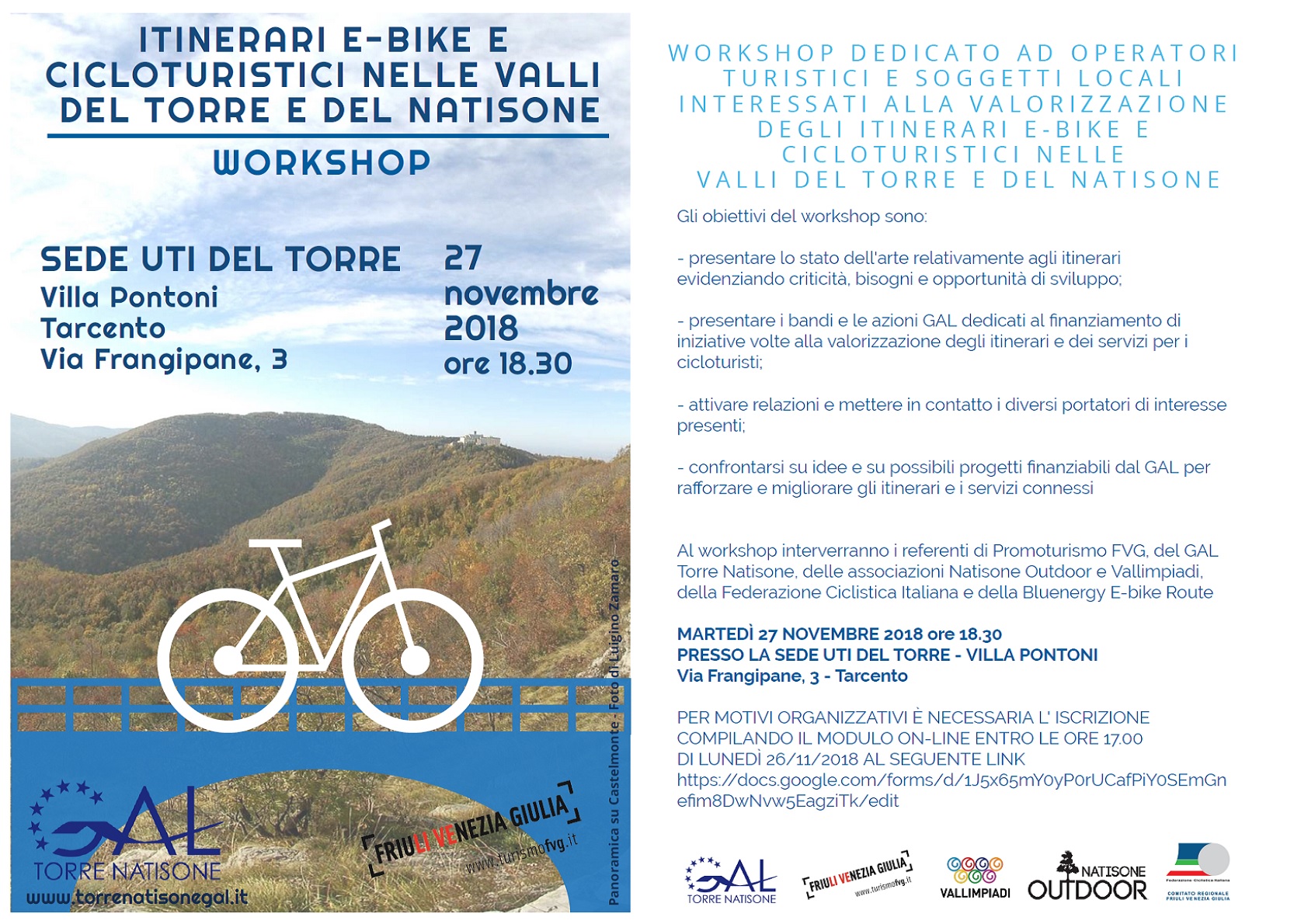 WORKSHOP: ITINERARI E-BIKE E CICLOTURISTICI NELLE VALLI DEL TORRE E NATISONE