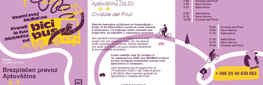 Con il progetto INTER BIKE III, di cui è partner anche il GAL Torre Natisone, si apre un nuovo capitolo della mobilità sostenibile e del turismo transfrontaliero. L’Agenzia di sviluppo regionale ROD Ajdovščina introduce in via sperimentale una nuova linea di trasporto gratuita che consente agli appassionati di ciclismo e natura un accesso facile e sostenibile agli angoli nascosti dell’area